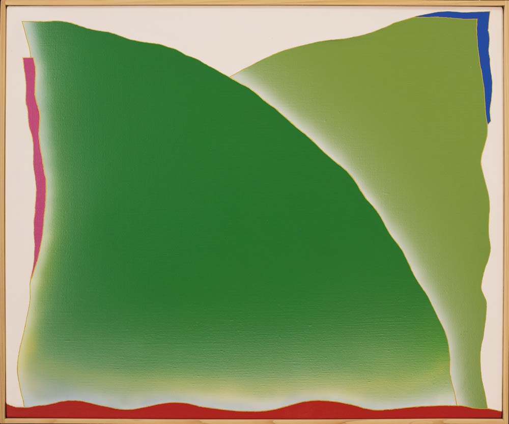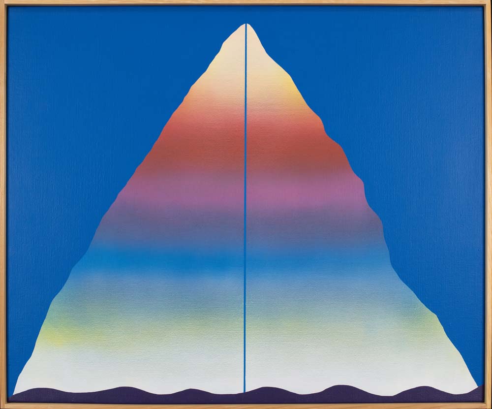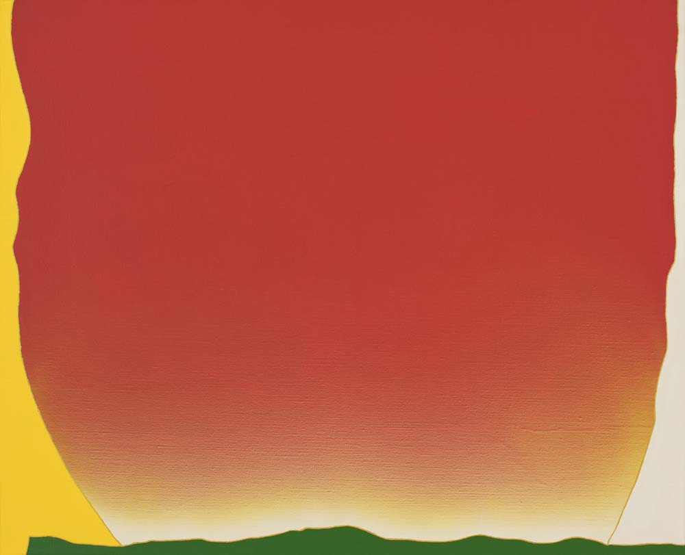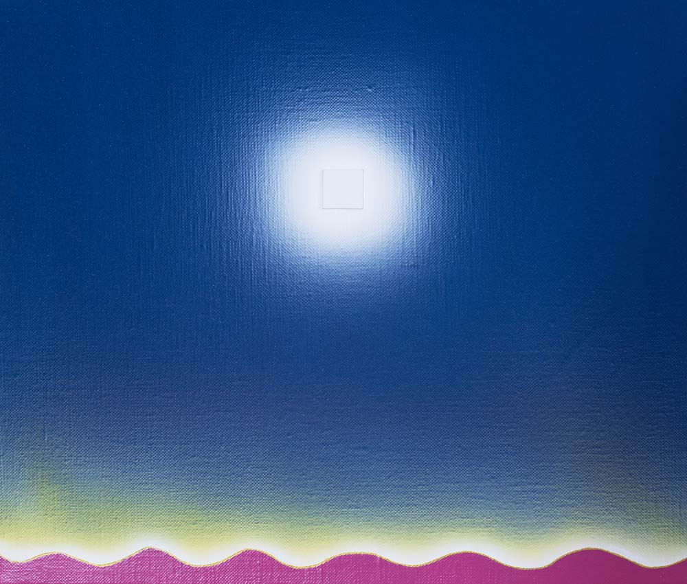 2010年以降、山本は「線と色面」の構成に光のグラデーションを加えることで、作品に新たな空間性を吹き込みました。波打つような暗色のオブジェと、その上に広がる光のような色彩のグラデーションは、抽象画の中に地平線や空間の奥行きを感じさせ、まるで「光が誕生する瞬間」のようなイマージュを創出しています。山本のグラデーションは、ただの装飾ではなく、見る者に遥かなる空間や永遠性、そして非現実的な神聖さを感じさせる力を持ちます。従来の幾何学的抽象の定義を超え、自然や感情、宇宙とつながる独自の風景画を生み出しているのです。